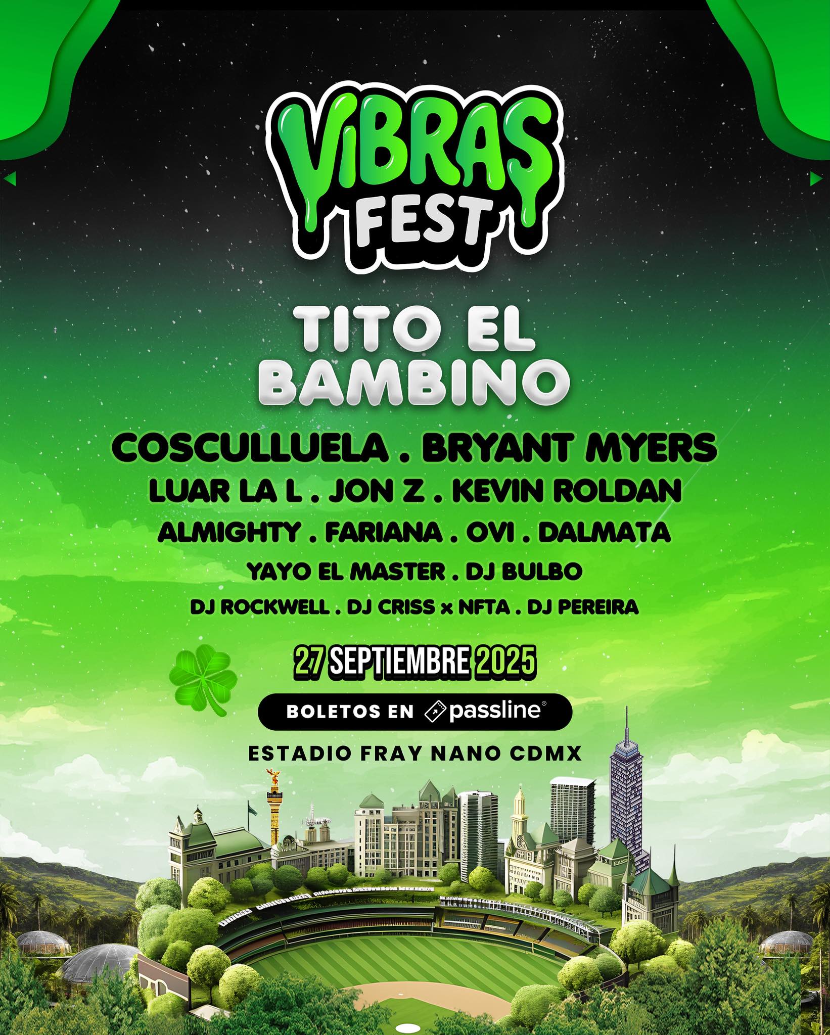 Vibras Fest 2025 está dispuesto para una jornada de música urbana con un enfoque en la «vibra» callejera, utilizando el Estadio Fray Nano como escenario principal para este concepto. Los boletos disponibles en Passline México detallan: